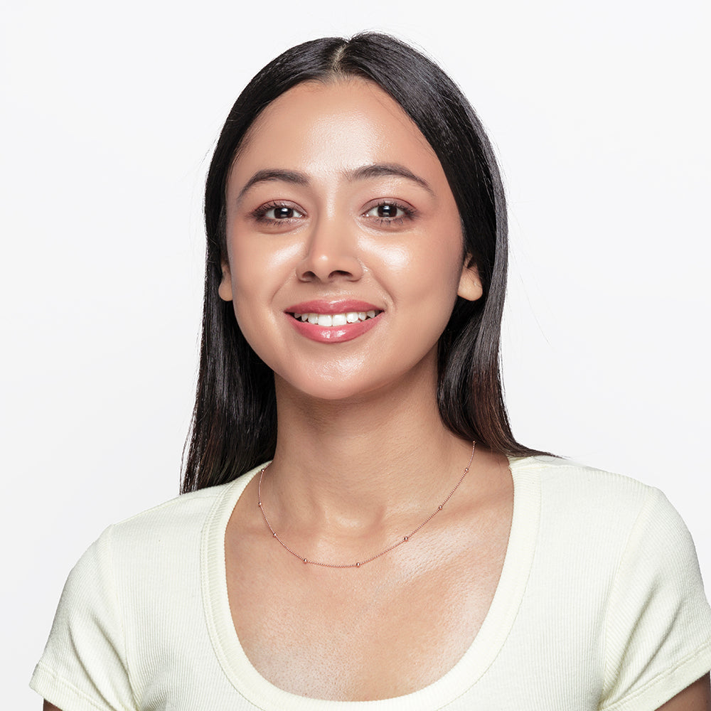 Ball Chain is a classic and versatile piece crafted from 92.5 Sterling Silver with a luxurious rose gold plating. Featuring smoothly polished metal balls, this Chain has a radiant mirror finish that adds subtle shine and elegance. Designed for casual and work wear, it effortlessly complements any outfit, offering a timeless and understated look. The delicate ball chain construction ensures comfort for all-day wear while maintaining a stylish presence. This chain seamlessly blends simplicity with sophistication, making it an essential accessory in any jewellery collection.