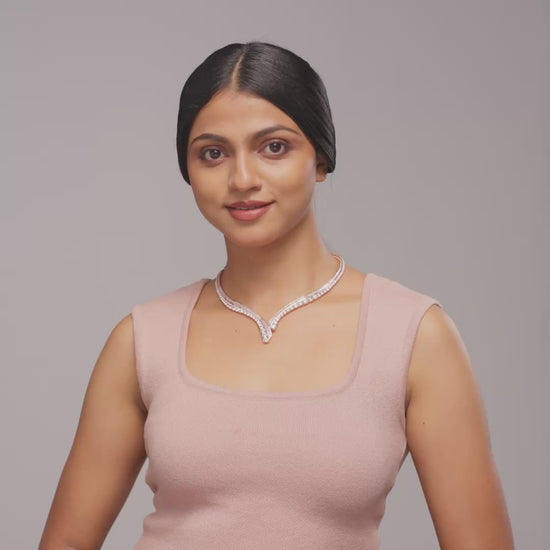 The Bauble V Necklace with Earrings set features a stunning rose gold plating over 92.5 Sterling Silver, accented with both baguette and round clear cubic zirconia stones for a brilliant mirror finish. Designed for evening and special occasion wear, this elegant set offers a sophisticated sparkle that complements formal attire beautifully. The V-shaped necklace pairs perfectly with matching earrings, creating a cohesive and refined look that captures attention with its modern yet timeless style. Ideal for adding a touch of glamour to any event or celebration.