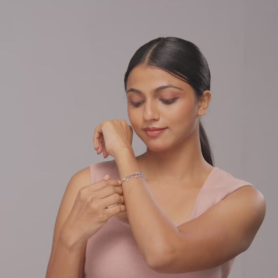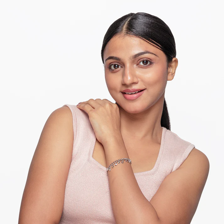 Galaxy Charm Bracelet is a stylish accessory crafted from 925 Sterling Silver with a polished silver finish. It features round clear cubic zirconia (CZ) charms that add a sparkling touch to the bracelet's design. The bracelet measures 6 inches in length with an additional 1-inch extender for adjustable comfort, making it suitable for various wrist sizes. Its mirror finish enhances the shine and sophistication, perfect for casual wear. Available also in rose gold finish, this versatile piece offers both elegance and everyday practicality, ideal for adding a cosmic-inspired flair to any outfit.