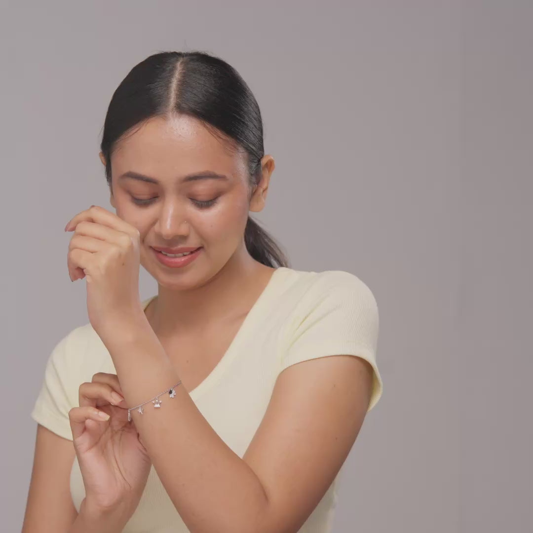 Goodluck Charm Bracelet is a beautifully crafted accessory made from925 Sterling Silver with a polished mirror finish that radiates elegance. It features symbolic good luck charms adorned with sparkling clear round cubic zirconia stones, offering both style and meaning in one piece. Perfect for casual wear, the bracelet adds a subtle shimmer and a touch of positive energy to everyday outfits. Available also in a warm rose gold plating, this bracelet makes a thoughtful gift or a personal talisman to carry luck and charm wherever you go.