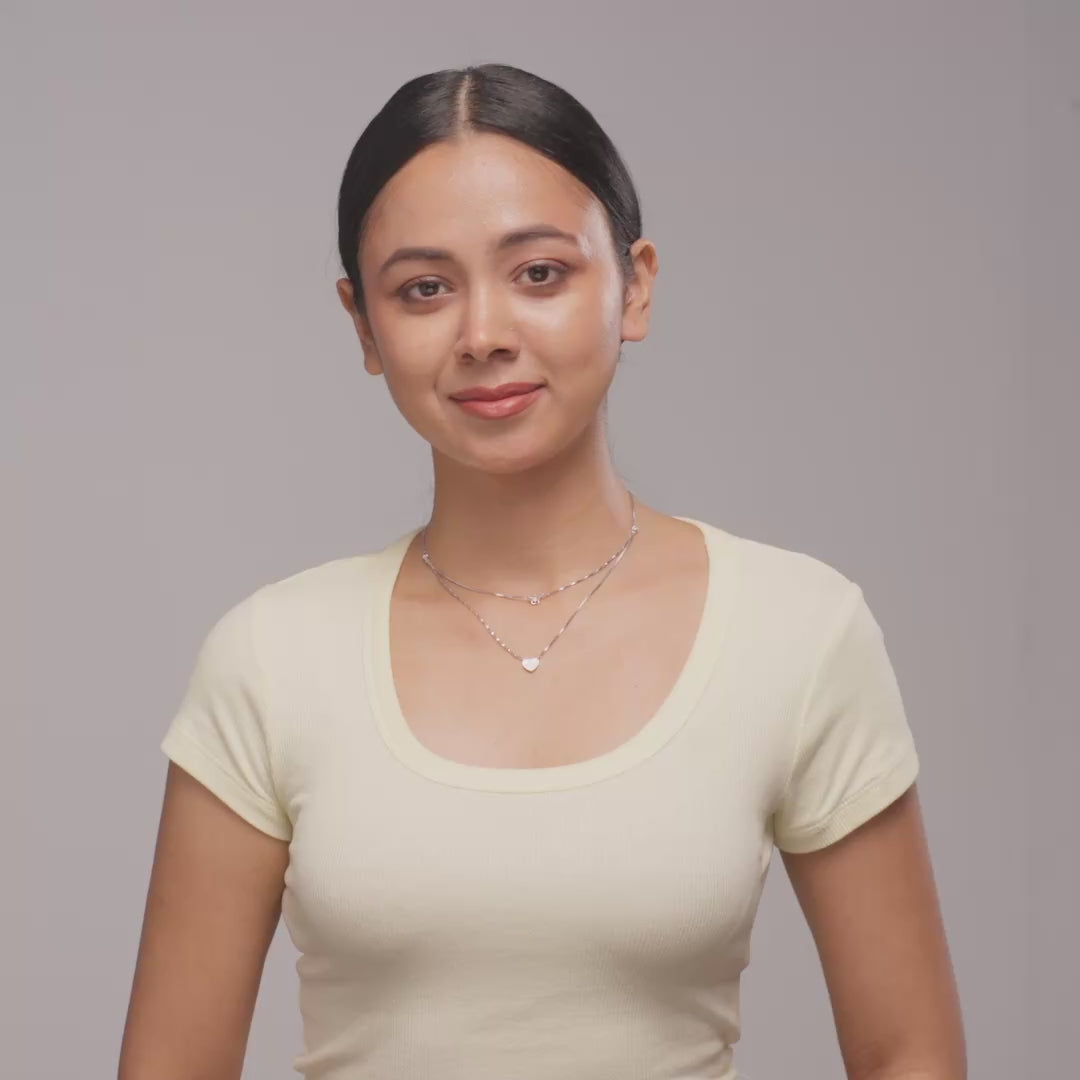 The MOP (Mother of Pearl) Heart Layer Necklace with Heart Drop Earrings features a stunning silver finish crafted on high-quality 925 Sterling Silver. The necklace showcases a delicate layered design centered around a luminous mother of pearl heart pendant, complemented by matching heart-shaped drop earrings. Both pieces have a mirror-like finish that adds subtle brilliance to your casual or work attire. This elegant set blends timeless beauty with everyday wearability, making it an ideal accessory for those who appreciate refined craftsmanship and understated sophistication.