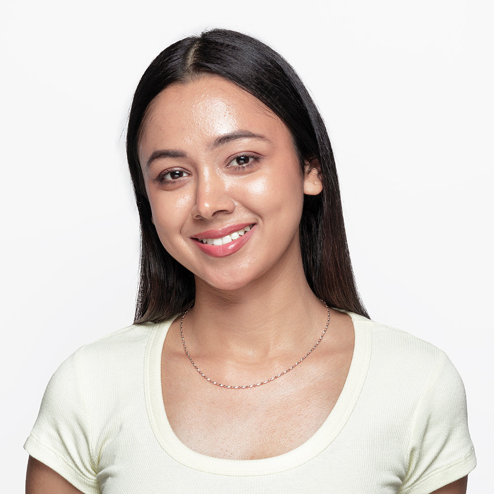 Ovoid Dual Tone Chain showcases a sophisticated blend of rose gold plating and classic silver finishes on 92.5 Sterling Silver. Featuring elegant ovoid motifs, this chain shines with a polished mirror finish that enhances its dynamic two-tone design. Perfect for casual and work-wear, it adds a contemporary yet timeless touch to any ensemble. Lightweight and versatile, this piece expertly balances modern allure with everyday practicality, making it a standout addition to your jewellery collection.