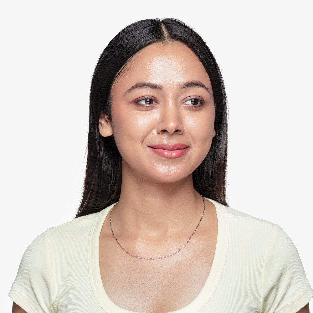 Twisted Tube Chain showcases sleek tube-shaped motifs crafted from authentic 92.5 Sterling Silver with a polished mirror finish that radiates refined elegance. Its twisted design adds texture and visual interest, creating a modern yet timeless piece suitable for casual and work wear. Lightweight and durable, this chain pairs effortlessly with pendants or can stand alone as a minimalist statement. The mirror finish enhances the chain’s shine, offering a sophisticated touch to any outfit. An essential addition to any jewellery collection, it balances style, function, and lasting quality.